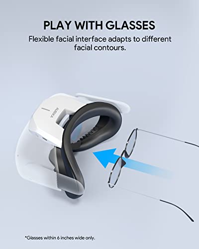 【Gioca con gli occhiali】 In grado di giocare con gli occhiali, risparmiandoti la fatica di indossare le lenti a contatto. (Solo occhiali larghi 6 pollici.) L'interfaccia facciale è dotata di un nasello anti-perdite staccabile per bloccare la luce esterna, offrendoti un'esperienza VR coinvolgente.