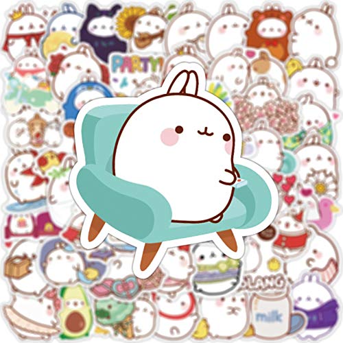 AUCEKO Set di 50 adesivi Molang Rabbit Chubby Rabbit Stickers Set di adesivi impermeabili in vinile per computer portatile, bambini, auto, moto, skateboard, bagagli, valigia, computer, graffiti Decal