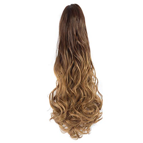 Estensioni a coda di coda: marrone medio con biondo chiaro di alta qualità per coda di cavallo con estensioni lisce come la seta e si fondono naturalmente con i tuoi capelli.
