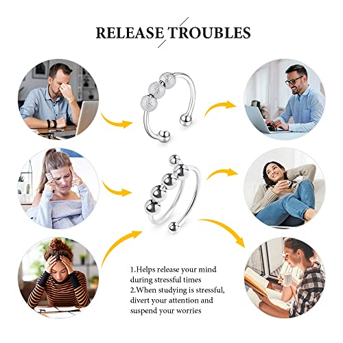 ❤【ANELLO APERTO REGOLABILE】 Questi anelli per l'ansia possono essere facilmente regolati per adattarsi a dita di diverse dimensioni, adatti alla maggior parte delle donne e delle ragazze. Il design rotante ti aiuta a distogliere l'attenzione e alleviare la noia, alleviare lo stress e ridurre l'ansia mentre studi o lavori.