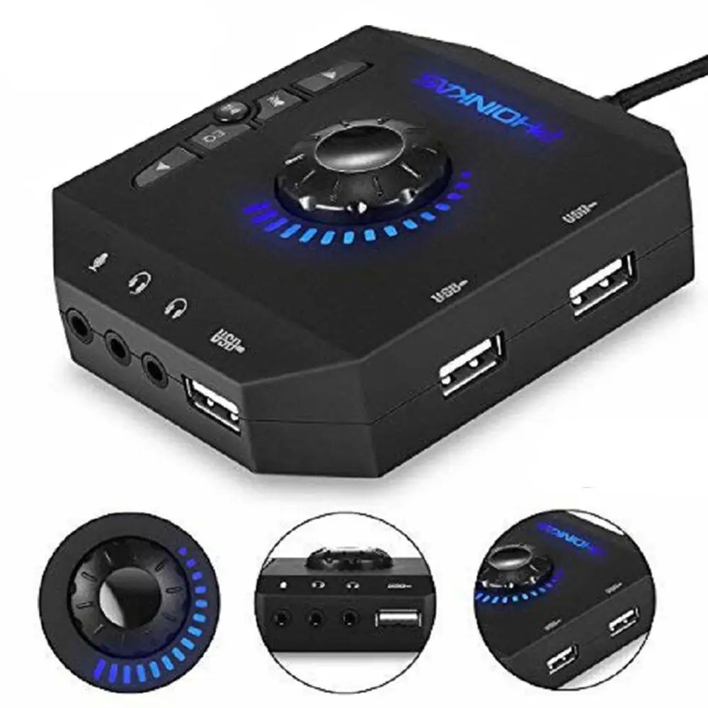 USB Hubs Audio Adapter External Stereo Sound Card 3.5mm Headphone Microphone PC