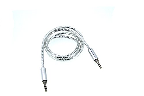 YF - Cavo audio in alluminio intrecciato, 1 m, placcato oro 24 K, connettore per cuffie, iPhone, iPod, iPad auto o stereo di casa (bianco)