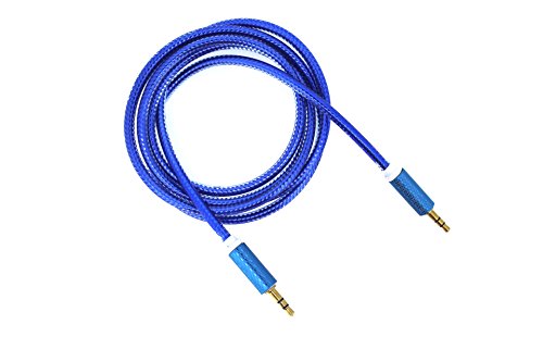 YF - Cavo audio in alluminio intrecciato, 1,5 m, cavo audio stereo placcato oro 24 K, connettore per cuffie, iPhone, iPod, iPad auto o stereo di casa, colore: blu