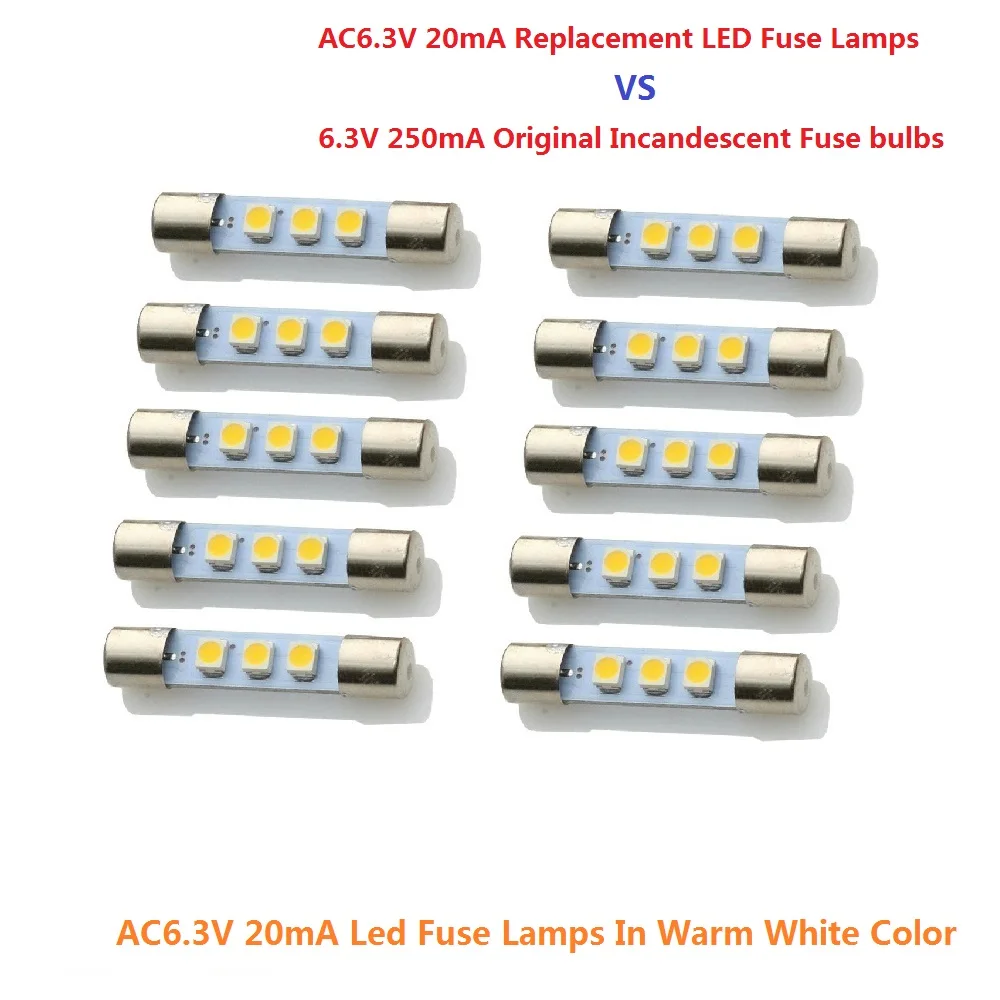 10 x 6-6.3V 20mA LED Audio Equipment Lighting Replace Incandescent Fuse Lamp Bulbs Fits Marantz,Sansui,Keenwood Vintage Recivers