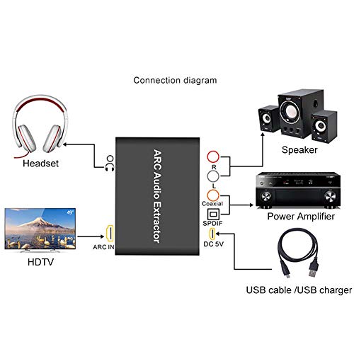 Estrattore audio ARC - Questo estrattore audio con ingresso HDMI e coassiale, SPDIF L/R RCA 3,5 mm, è adatto per TV. (Nota: possono essere supportati solo i televisori con la funzione HDMI ARC.)