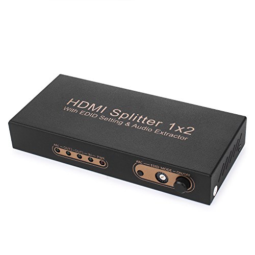Tecnologia di ultima generazione: Splitter HDMI con 16 modalità EDID integrata che può essere ciclata da un interruttore sul pannello frontale per migliorare notevolmente la compatibilità tra i dispositivi che sono suddividere un segnale sorgente a. 'Supporta tutti i formati audio e video più recenti tra cui sia ottico e coassiale uscite digitali e uno standard analogico 3.5 mm jack.