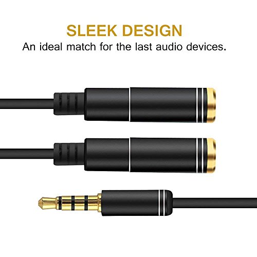 Cavo audio da 3,5 mm Maschio a 2 Femmina Cavo adattatore Divisore audio per altoparlante, tablet, Phone, auto, smartphone, MP3 / MP4 (0.5M, placcato in oro, nero)