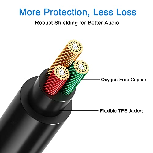 【Qualità audio superiore】- Cavo ausiliario con nucleo in rame senza ossigeno placcato oro 24K e doppia schermatura, che potrebbe fornire la massima conducibilità e durata, trasferire segnale audio ad alta purezza. Offri un suono chiaro e stereo ai tuoi dispositivi.