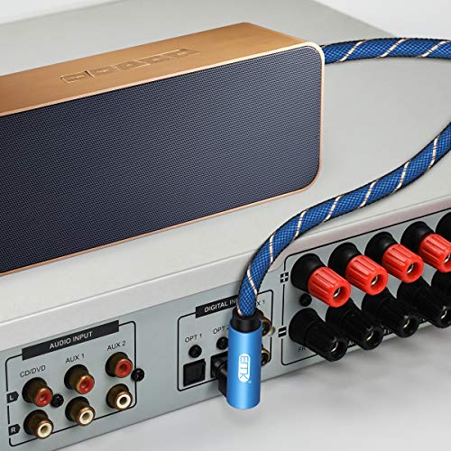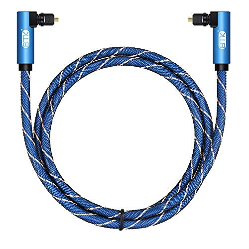 EMK Cavo Audio Ottico Doppio Angolo Retto a 90 Gradi Cavo Toslink Cavo in Fibra Ottica Audio Digitale intrecciato in Nylon per Soundbar, TV, DVD, Altoparlante, blu (1 m)