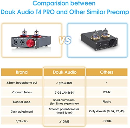 Douk Audio T4 PRO can be used as a MM phono preamp, a tube audio preamp and a headphone amplifier, powerful function in mini size, specially designed for various requirements of home/desktop audio system.