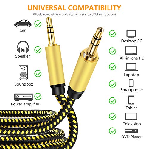 【Pratico Cavo Audio Aux】Il cavo da 3,5 mm maschio a maschio trasmette l'audio stereo Hi-Fi direttamente dai dispositivi di uscita aux (line-out) ai dispositivi di ingresso aux (line-in), senza convertitori audio, come il collegamento del laptop all'altoparlante, telefono alle cuffie, TV alla soundbar, telefono all'impianto stereo dell'auto. Il cavo da 3,5 mm maschio a maschio semplifica la connessione e ti consente di ascoltare la musica ovunque.