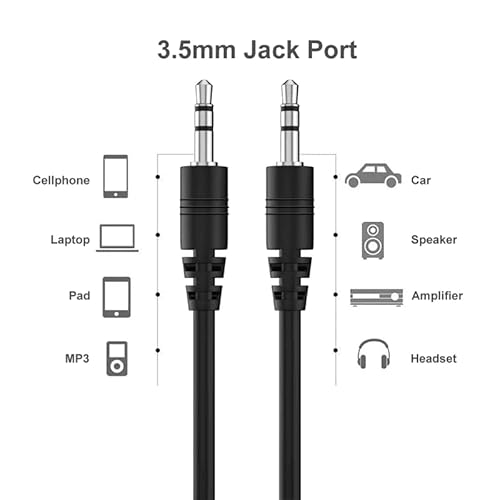 Cavo audio stereo Jack, 3,5 mm, maschio-maschio, 5 metri, Nero, cablepelado