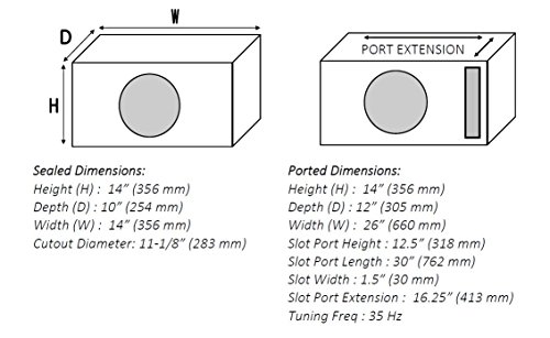 Dimensione porta scanalata da 3,8 x 32,5 cm, lunghezza porta da 30 pollici, frequenza della porta 35 Hz
