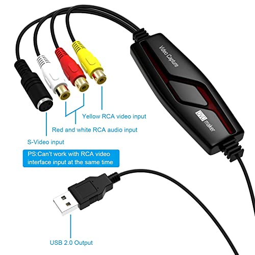 USB 2.0 Audio Video Grabber, adattatore per il montaggio di video, Hi8 VHS a DVD Digitizer per Mac o Windows 7 8 10 con adattatore di conversione Scart/AV