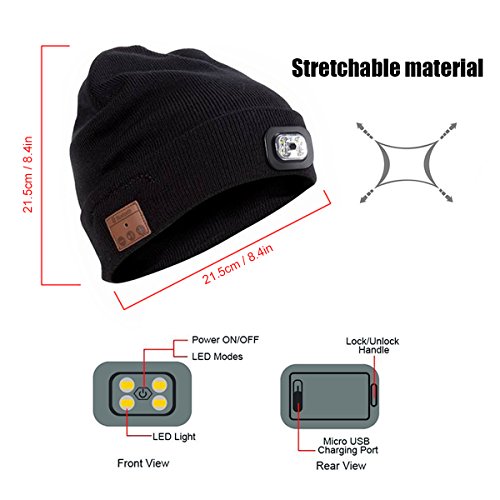 4) con LED Headlight Beanie. Design 2 in 1, 4 modi per la regolazione della luminosità LED, medio/luminosità Hight/lampeggiante lento/lampeggiante veloce.Con porta USB di ricarica. Gamma di illuminazione: luce oltre 20 meters davanti.