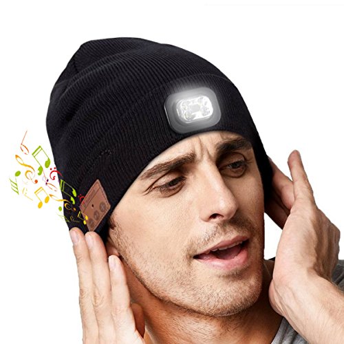 Audoc Bluetooth Beanie cap con Faro LED USB Ricaricabile Senza Fili Musicale Unisex per Correre Sci Escursionismo Campeggio Ciclismo