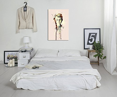 Audrey Hepburn II _ 90 x 60 cm Telaio Immagine illustrazioni ad acquerello arte murale su tela pronta da appendere originale Paul Sinus Art pezzo unico