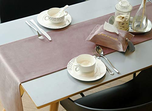 AueDsa Runner da Tavola 32x200CM,Runner da Tavolo Piccolo Rettangolare Velluto Colore Solido Semplice Rosa