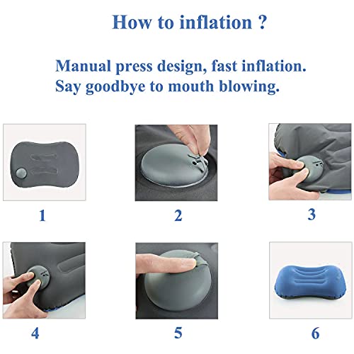 [Pompa d'aria incorporata, pressione manuale per gonfiare]: sono necessari solo tempi di pressione manuale per espandere il cuscino. Basta premere delicatamente il cuscino con la mano per farlo esplodere. Dopo il completamento, puoi facilmente utilizzare la funzione di sgonfiaggio rapido per sgonfiare il cuscino e rilasciare rapidamente l'aria entro pochi secondi dall'uso. Il metodo tradizionale di gonfiare il cuscino con il soffio della bocca è scomodo, inoltre è più caldo.