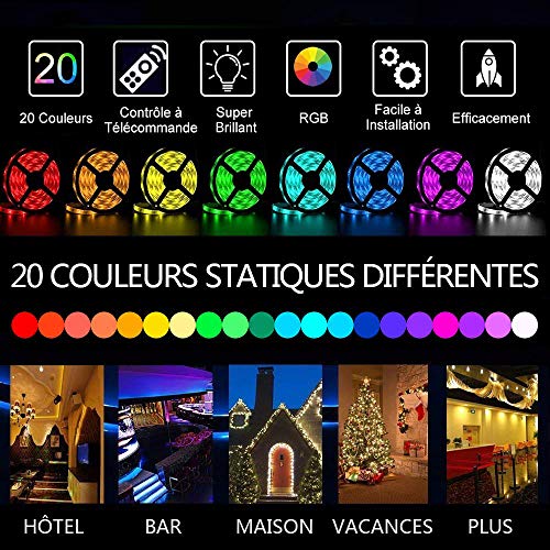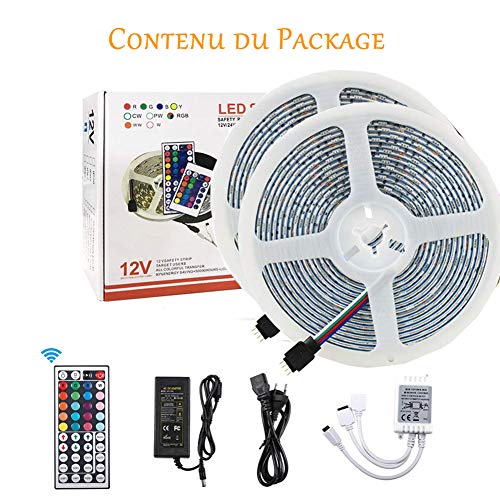 AUELEK - Striscia LED RGB, 10 m, multicolore, 5050 RGB 300 LED, IP65, impermeabile, flessibile, flessibile, con 44 tasti, telecomando a infrarossi e alimentazione 12 V