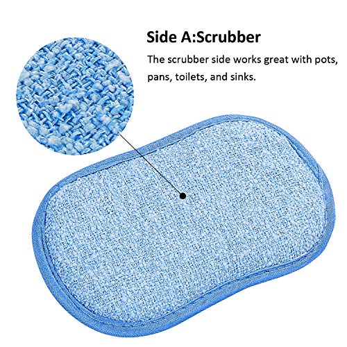 AUERVO Spugna Detergente Antibatterica in Microfibra a Doppia Azione, Confezione da 5 Panni Detergenti per Cucina Spugne Spugne Pad Panno Antiaderente Padelle AntiGraffio