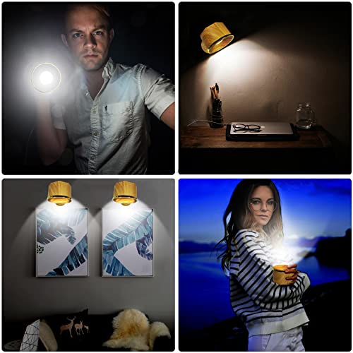 Auezona Applique da Parete Interno Dimmerabile Senza Fili, Ruotabile a 360° 3 Livelli di Luminosità 16 Modalità Colore Lampada da Parete con Telecomando per Soggiorno Corridoio, bordo in oro legno