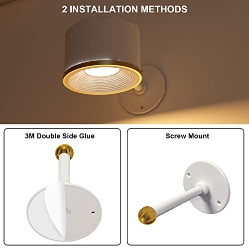 2 MODI DI INSTALLAZIONE - Questa applique da parete interno ha due metodi di installazione: 1. Installazione non distruttiva. Usa il nostro forte nastro biadesivo incluso per fissare la luce su una superficie liscia della parete, molto forte e non cadrà per molto tempo. 2. Utilizzare le viti per fissare la luce ad altre pareti non così lisce.
