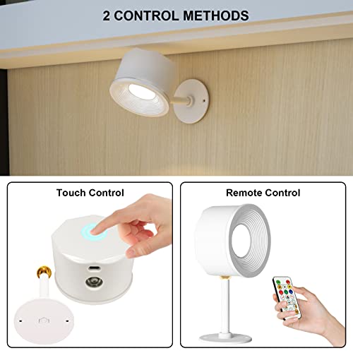Auezona Applique da Parete Interno Dimmerabile Senza Fili, Ruotabile a 360° 3 Livelli di Luminosità 16 Modalità Colore Lampada da Parete con Telecomando per Camera da Letto Soggiorno