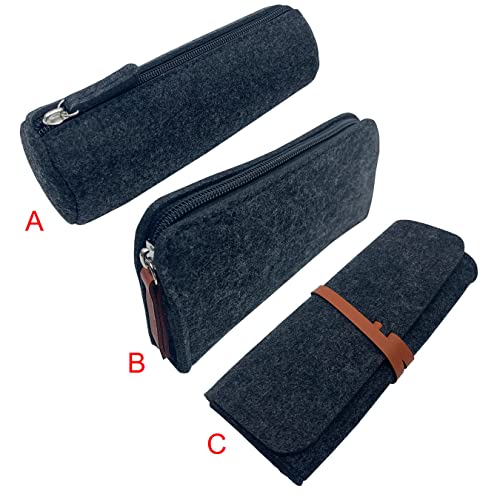Aufodara 3 astucci in feltro multifunzionali con chiusura lampo, per penna, moneta, cancelleria, viaggio d'affari (grigio scuro)