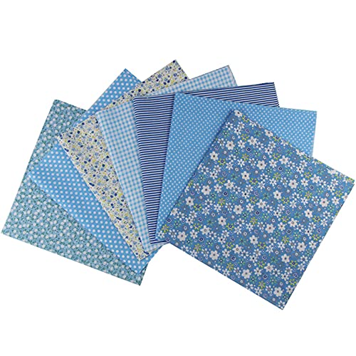 Aufodara 7 Pezzi 50x50 cm Quadrati Tessuto Cotone Stoffa Patchwork Modelli Diversi Tessuti per Cucito, Quilting, Artigianato, Fai da Te, Hobby Creativi, Materiali Pacchetto (Blu)