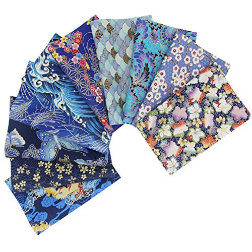 Aufodara 10 Pezzi 20 x 25 cm Tessuti Tessuto Cotone Stoffa Stile Giapponese Tessuto Abbronzante Patchwork Cucito Creativo Stoffe a Metro Materiali per Hobby Creativi Quilting Tessuto (Blu Navyblue)