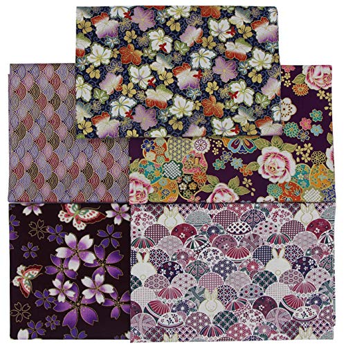 Aufodara 5 Pezzi Tessuto in Cotone 50x50 cm, Stoffa Stile Giapponese, Tessuti effetto dorato Patchwork Cucito Quilting, Brillante Stoffe per Hobby Creativi (Viola)