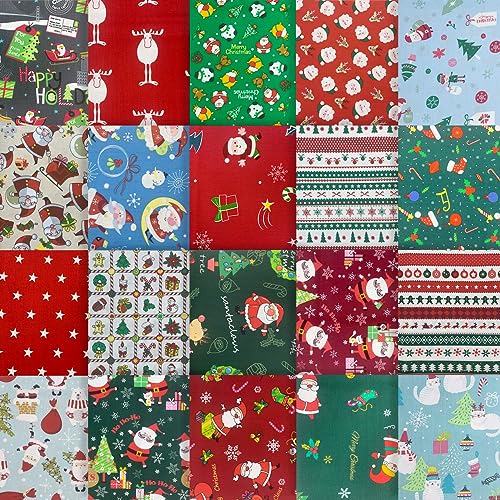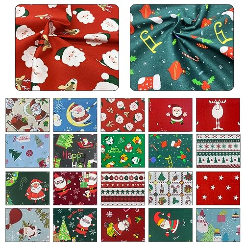Aufodara 20 tessuti natalizi per patchwork, 25 x 25 cm, in cotone, per lavori artigianali, scrapbooking, decorazione, trapuntatura, cucito, trapuntatura, fai da te (U-01, 25 x 25 cm - B)