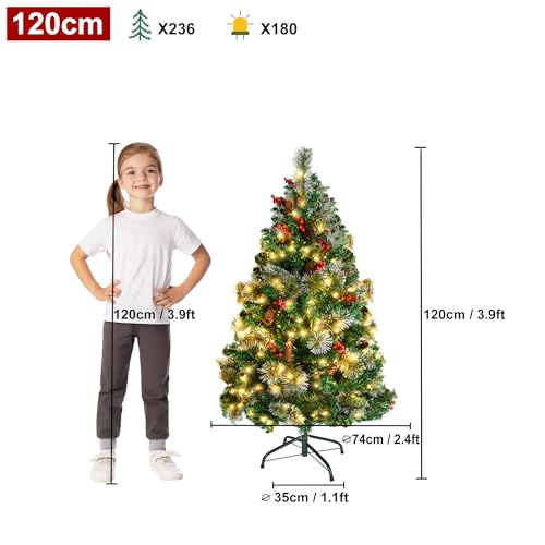 Aufun Albero di Natale artificiale con luci, 120 cm, abete artificiale, montaggio rapido, con supporto per albero di Natale, riutilizzabile (PVC, LED, pino, conifera)