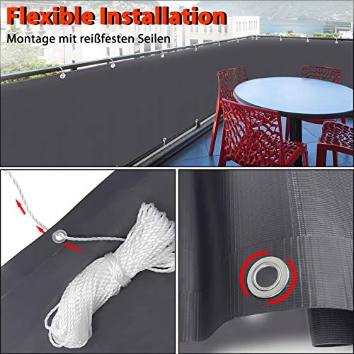 Aufun - Telo in PVC per balcone, 600 x 90 cm, con occhielli e cordoncino, protezione antivento senza viti, parasole per balcone, impermeabile (antracite)