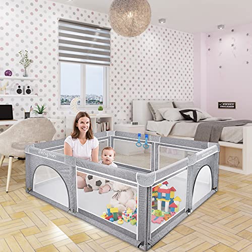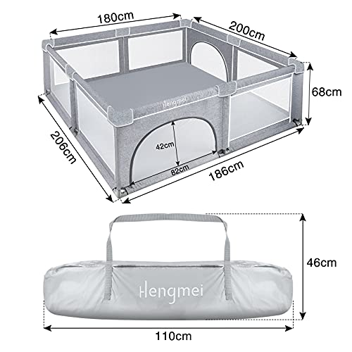 Aufun Box per bambini, griglia di intercettazione, grande area giochi di sicurezza, per bambini, grigio (200 x 180 x 68 cm)