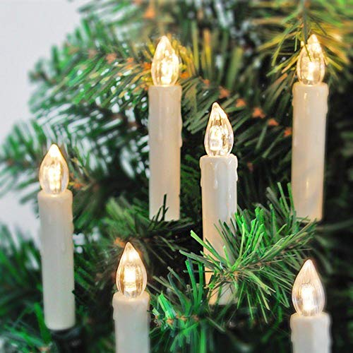 Aufun 30 pcs Candele LED Senza Fiamma, Cono Candele Decorazioni Natalizie con Batteria con Telecomando, per Albero di Natale, Decorazioni Feste, Matrimonio (Bianco Caldo)