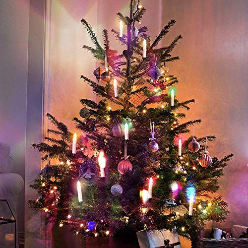 Aufun 40 pcs Candele LED Senza Fiamma, Cono Candele Decorazioni Natalizie con Telecomando con Timer, per Albero di Natale, Decorazioni Feste, Matrimonio (RGB)
