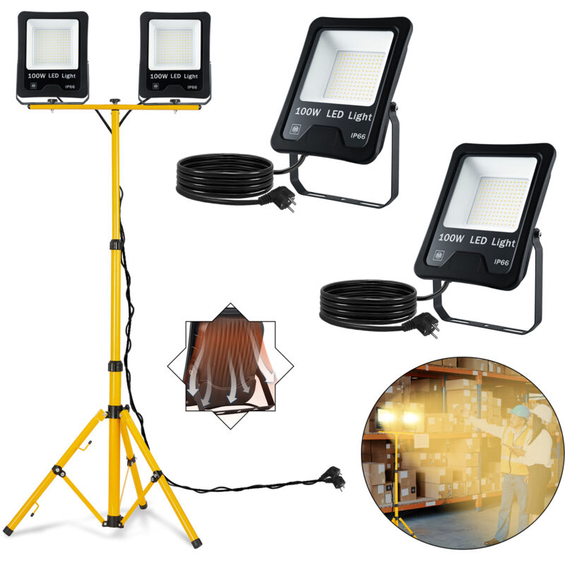 Faretto da costruzione a LED - tensione: AC85-265V, angolo del fascio: ca. Questo faro è realizzato con alloggiamento in alluminio e vetro temperato, elevata durezza, non facile da rompere. Il corpo della lampada è orientabile di 180° - Grazie al supporto in metallo il faro può essere montato in modo sicuro ovunque. Treppiede telescopico regolabile da 50 cm a 150 cm, struttura a 3 gambe per supporto sicuro e portacavo. IP66 impermeabile e antipolvere - La classe di protezione del faro a LED è IP66, grazie all'alloggiamento resistente alle intemperie, il faro a LED rimane protetto da umidità e polvere, stabile e durevole. Alta efficienza energetica - Il faro adotta come sorgente luminosa LED ad alta efficienza, che nel tempo è 10 volte quella delle lampade tradizionali. Sono destinate a sostituire le lampade alogene convenzionali. Durata utile: ca. Adatto per l'illuminazione interna ed esterna, offrendoti una notte luminosa e sicura. Come giardini, cortili, ville, parchi, cartelloni