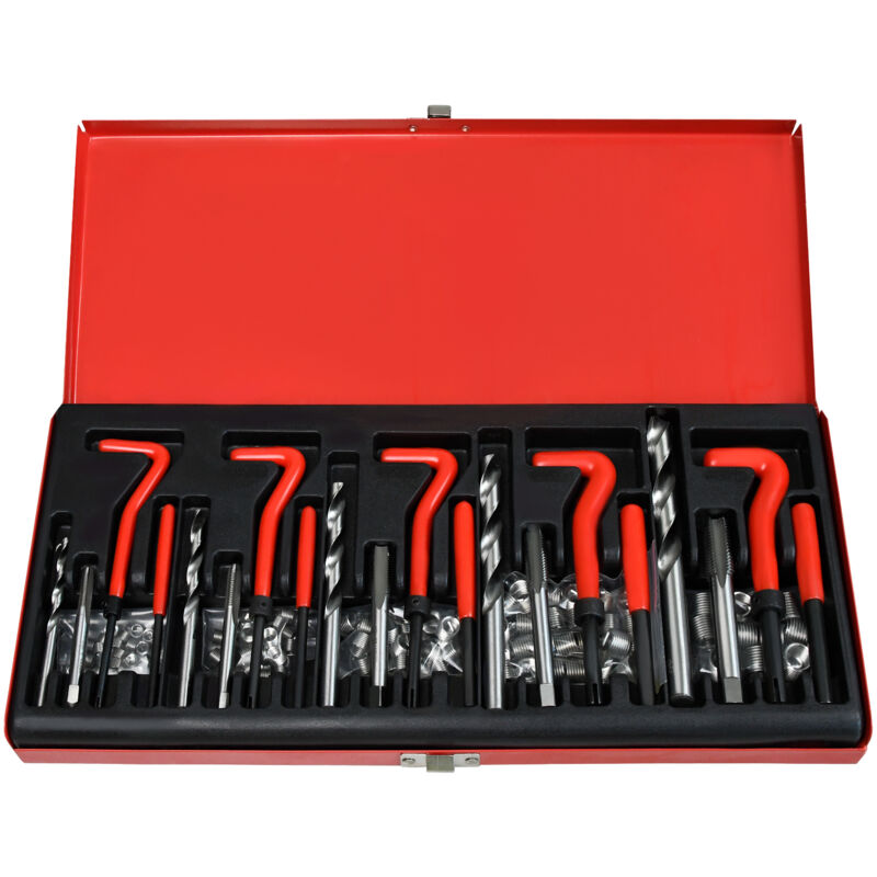 Riparazione filettature danneggiate - I fori filettati o i bulloni filettati danneggiati possono essere riparati e resi nuovamente utilizzabili senza la necessità di parti di ricambio, risparmiando sui costi di riparazione e delle parti di ricambio. [Materiali durevoli] Realizzato con metalli di alta qualità che sono duri e quindi estremamente durevoli e possono resistere all'uso ripetuto e al lavoro intenso. [Kit multifunzionale] Il set Helicoil è composto da un totale di 131 pezzi, inclusi inserti, inserti filettati, punte elicoidali, maschi e strumenti di rottura, che consentono di eseguire una riparazione senza intoppi.< /p> [Portatile] I ricambi sono conservati in una robusta scatola di metallo, che li rende facili da riporre, organizzare e trasportare. Aiuta a mantenere i pezzi di ricambio ordinati e organizzati e impedisce che si perdano o danneggiarsi. [Multiuso] Che tu lavori su riparazioni di automobili, ingegneria meccanica, lavorazione del legno o progetti fai-da-te, il