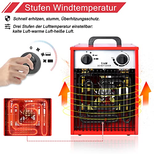 Aufun Riscaldatore elettrico 5 KW, Termoventilatore industriale professionale con 3 livelli di riscaldamento, protezione da sovraccarico, ideale per uso interno ed esterno (5000W)