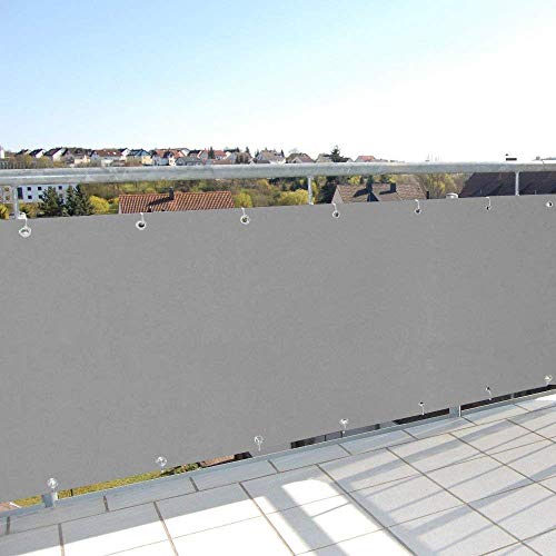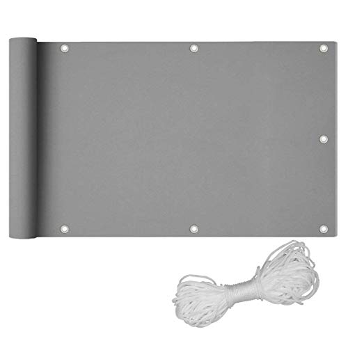 Aufun Schermo per Balcone Frangivista e Telo frangivento con Occhielli e Cordoncino, Impermeabile Recinzione per Balcone per Privacy, 0,9 x 6 m, Grigio Chiaro