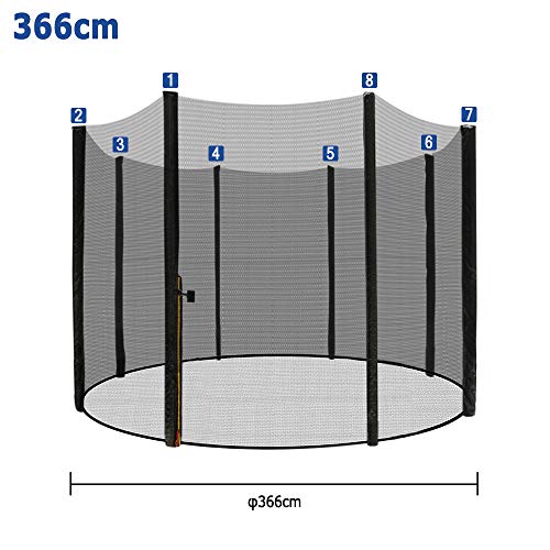 Aufun Rete di Sicurezza per Trampolino da Giardino, Ø 244 305 366 426 cm Rete di Ricambio in polietilene, antistrappo, Resistente ai Raggi UV(Nero, Ø 366cm)