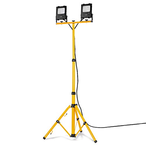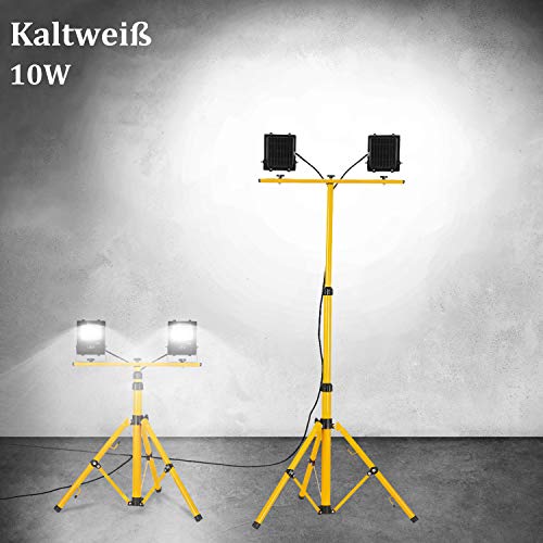 Aufun - Faro LED da 10 W con supporto, faretto a LED, per esterni, impermeabile, IP66, regolabile in altezza, 50-150 cm, per casa, hotel, Marketplace giardino, 2 x 10 W, bianco freddo