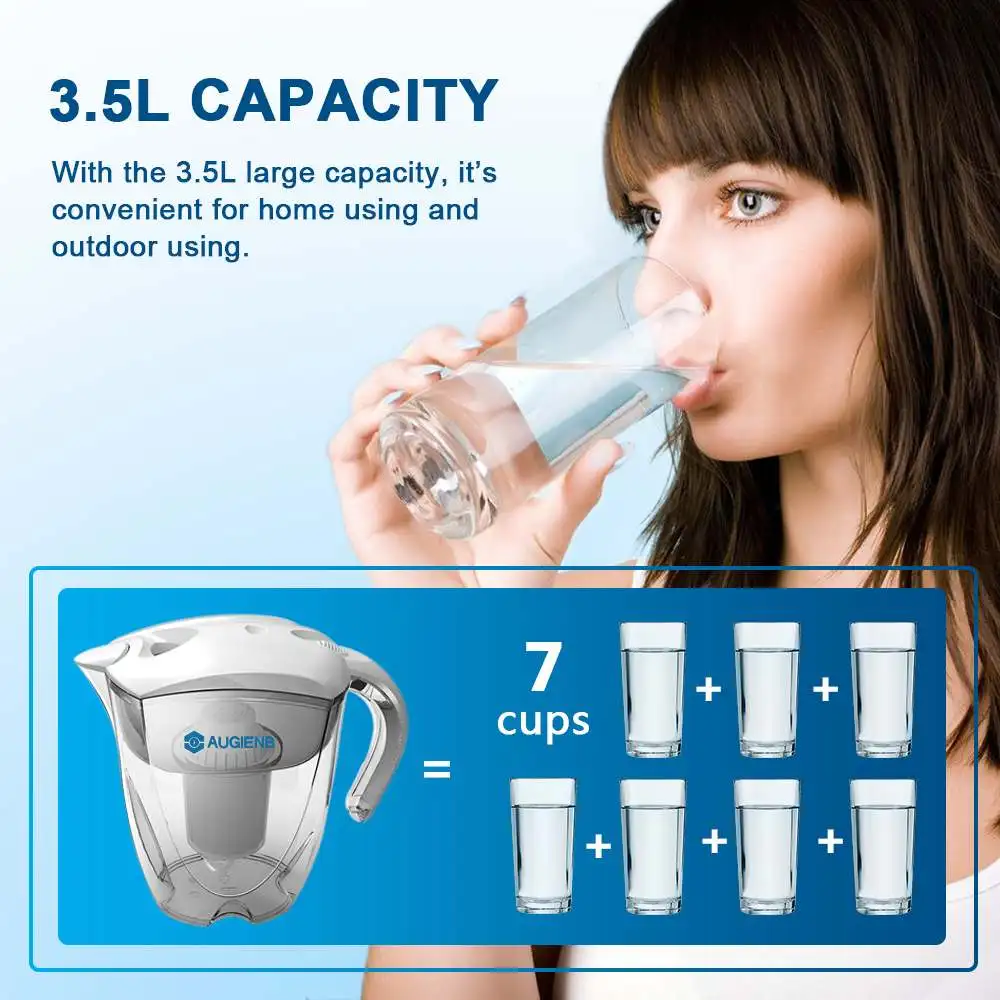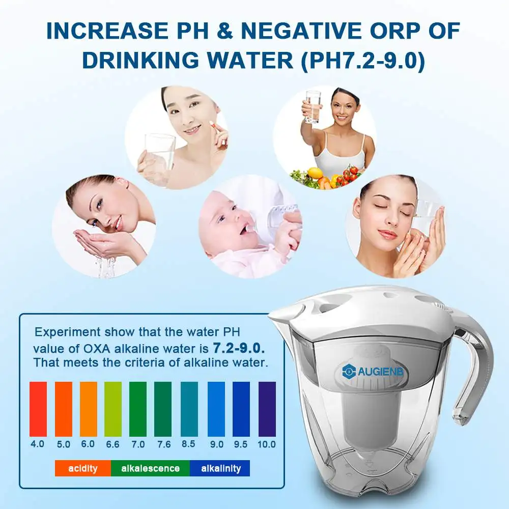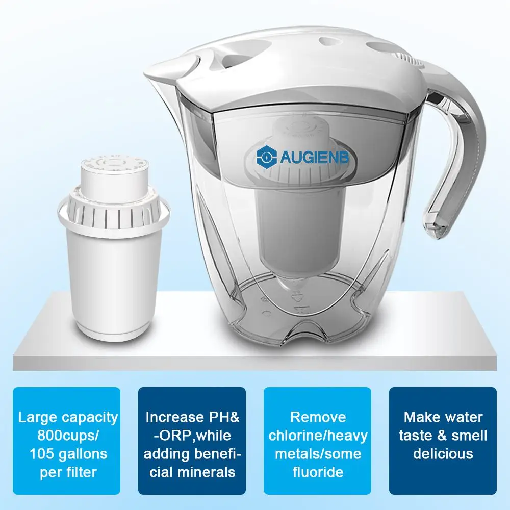 AUGIENB Alkaline Water Pitcher Ionizer Long-Life Filters - Water Filter Purifier Filtration System - High pH Alkalizer - 3.5L