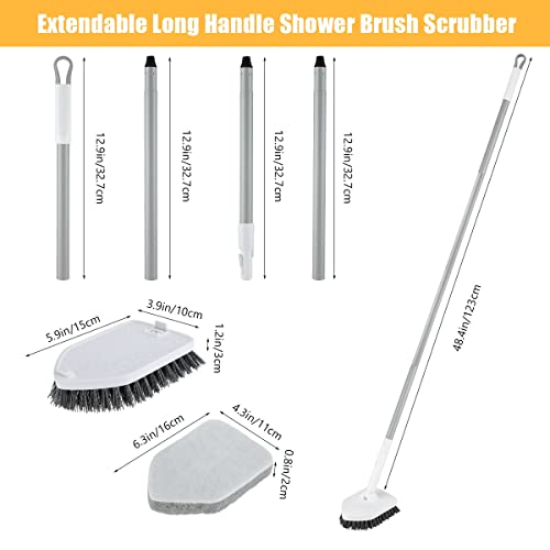 Augot 2 in 1 Spazzola Pulizia Doccia, Spazzola per Vasca e Piastrelle Spazzole per Pulire con 123cm Manico Lungo, Spazzola per la Pulizia del Bagno Ruotabile di 180° per bagno, cucina, piscina