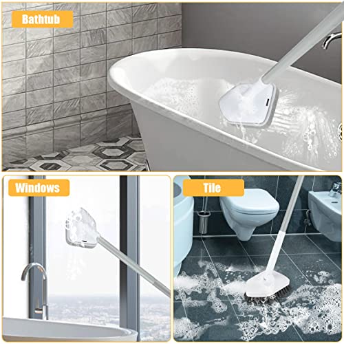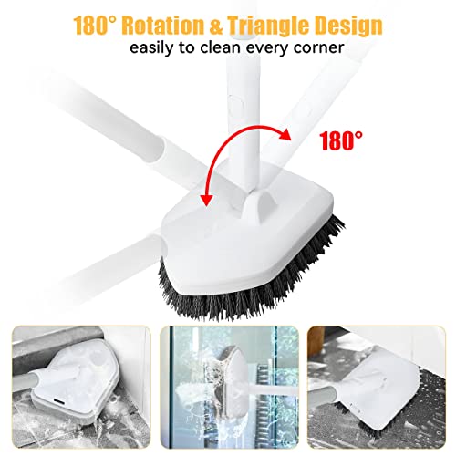 【Rotazione di 180 ° e gestibile】 - Triangolo flessibile e design girevole di 180 gradi, consente alla spazzola per la pulizia della doccia scrub di pulire facilmente angoli bassi e scanalature da diverse angolazioni, rendendo le faccende domestiche più facili e pulite. La spazzola per la pulizia della vasca a manico lungo è progettata con fori sospesi sulla parte superiore per appendere e riporre facilmente
