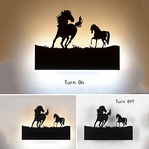 Augrous Lampada da Parete LED 12W Cavallo Forma Ferro Acrilico Murale Lampada per Parete Decorazione