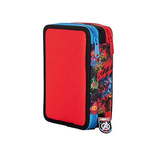 Auguri Preziosi Supereroi Marvel Astuccio Scuola Elementare Triplo, Astuccio Portapenne e Portamatite Pieno con 18 Matite Colorate, 18 Pennarelli e Set Cancelleria, Giochi Preziosi