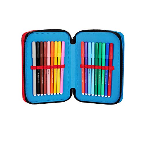 Astuccio Portapenne e Portamatite colorato e divertente, contiene un set di cancelleria completo da 43 pezzi